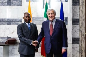 روما- التقى وزير الخارجية الإيطالي، أنطونيو تاياني بمقر الوزارة نظيره في جمهورية ساحل العاج، كاكو أدوم.