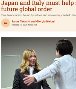وأكد المقال المشترك عزم إيطاليا واليابان على “بناء مستقبل يسوده الأمن والسلام والازدهار والاستقرار”.