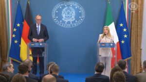 وأعربت ميلوني، في مؤتمر صحافي بروما عقد لقاء القمة الذي جمعها والمستشار الألماني، فريدريش ميرتس الجمعة، عن “الاعتقاد بأن هذه القضية يجب معالجتها بجدية في إطار حلف شمال الأطلسي (ناتو)”.